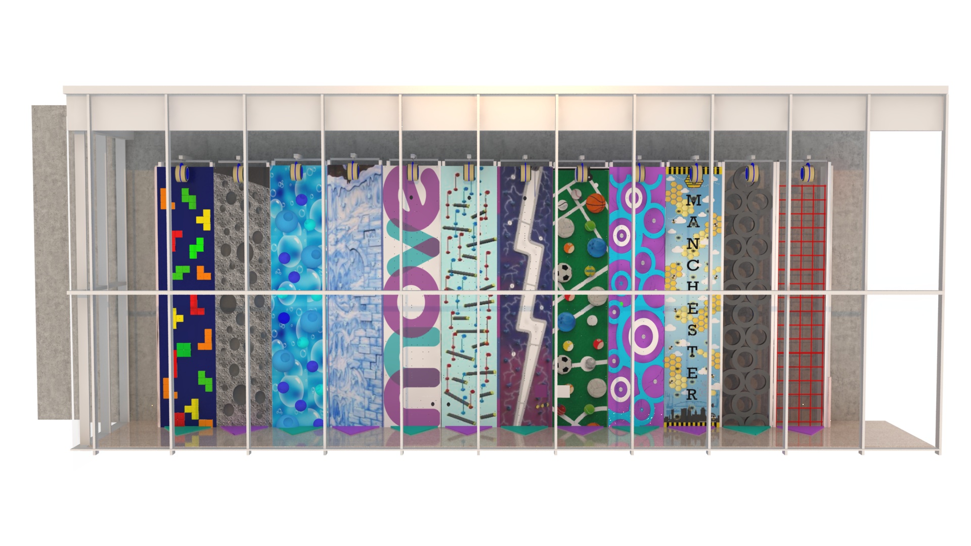 El objetivo ha sido crear una experiencia totalmente diferente a la de los gimnasios de escalada tradicionales. Quería que la escalada fuera más accesible, visualmente atractiva y, sobre todo, divertida para todas las edades.