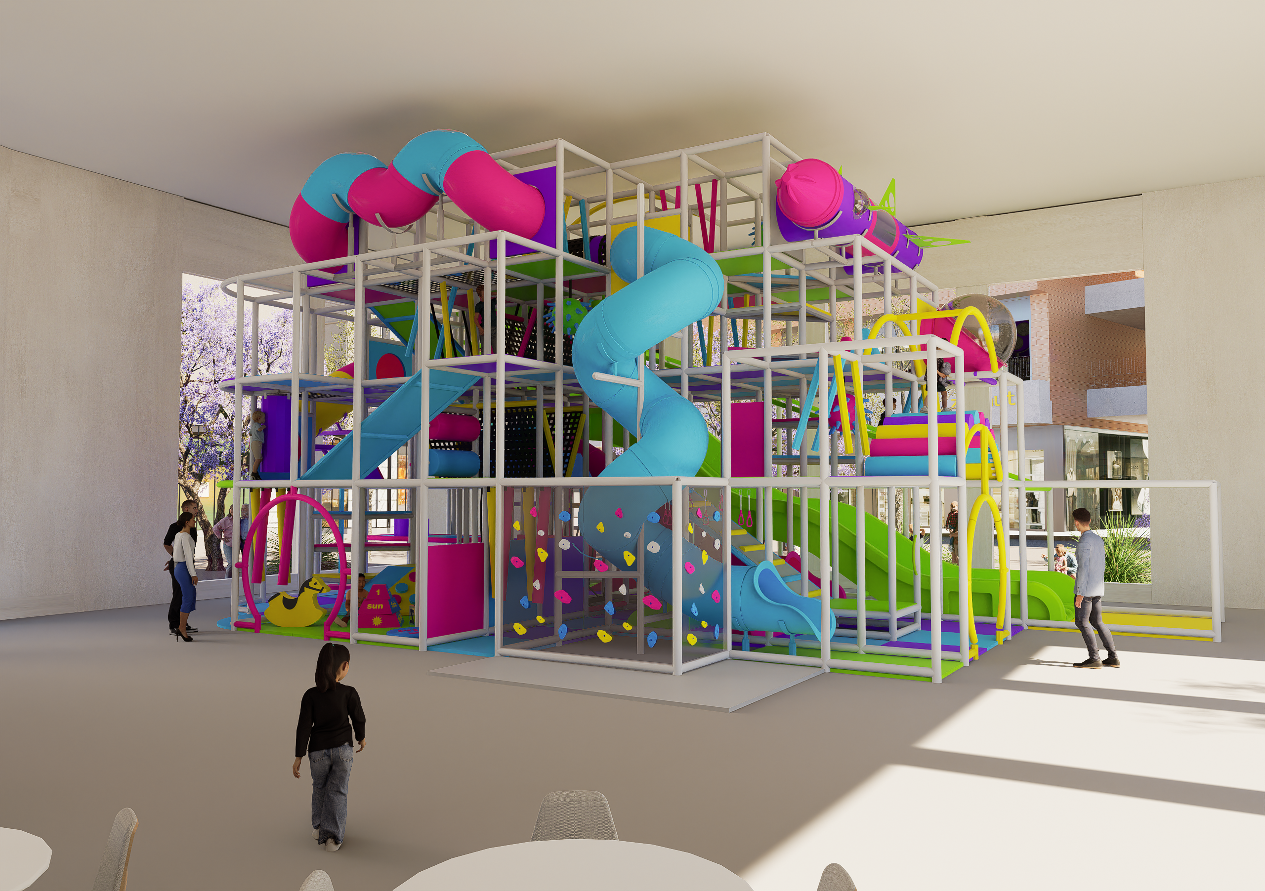 Además, el parque cuenta con una zona especial para niños pequeños, equipada con elementos adaptados para bebés que gatean hasta niños de más de 3 años, garantizando una experiencia segura, estimulante y adecuada a cada etapa del desarrollo.
